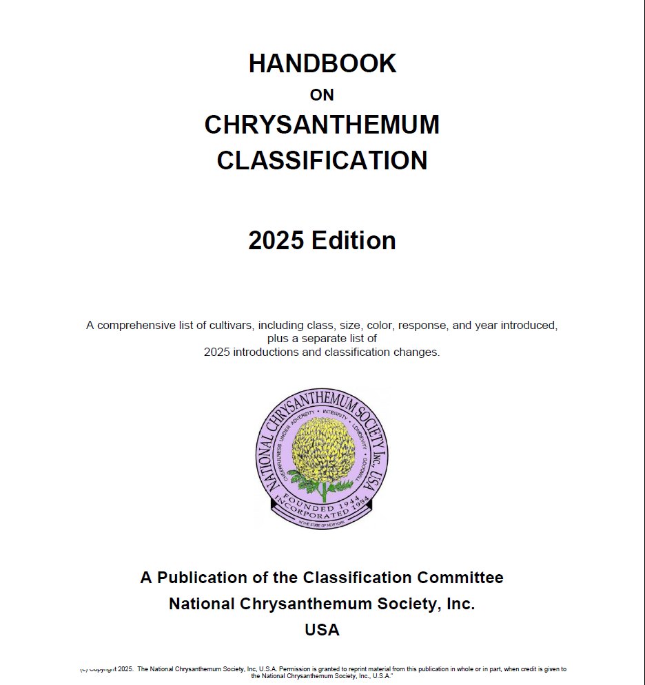 A comprehensive list of cultivars including class, size, color, response, and year introduced, plus a separate list of 2025 introductions and classification changes.